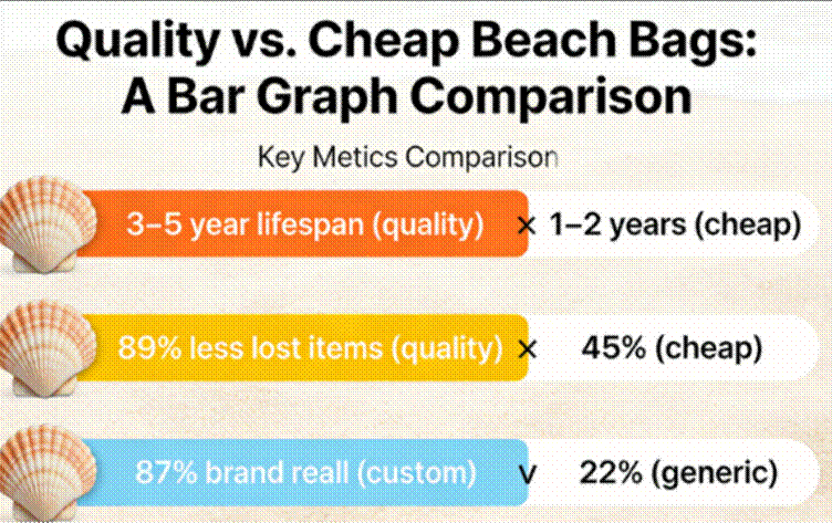 - Memorial Value (For Custom Bags): Personalized or group beach bags become keepsakes – 77% of people keep custom bags for years, remembering the vacation, event, or group they were made for. For businesses, custom beach bags cost just 10–30 per unit (in bulk) but generate 68% more brand impressions than other promotional products.