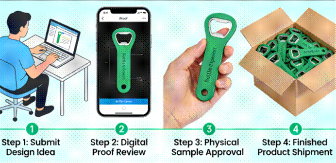 we believe that every custom bottle opener should tell a story—and we’re here to help you tell yours. We specialize in creating high-quality, fully customizable bottle openers that meet your unique needs, whether you’re a business looking to boost brand awareness or an individual celebrating a special moment. Our process is simple, transparent, and designed to make your experience stress-free, with 4 easy steps: 1) Share your vision (logo, design, message, or idea—we accept sketches, digital files, or even just a description); 2) We create a free digital proof within 24 hours, so you can see exactly how your opener will look; 3) Approve the proof, and we’ll create a physical sample (ready in 3-4 days) for you to inspect; 4) Once you’re happy, we produce your order—with a minimum order quantity of 200 pieces and a lead time of 10-14 days—and ship it worldwide with free tracking.
