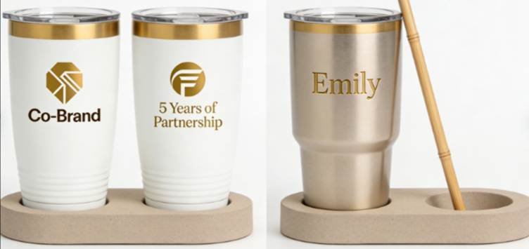 Every customization choice reinforces your brand identity and the strength of the partnership, turning the tumbler set from a promotional product into a tangible symbol of collaboration.