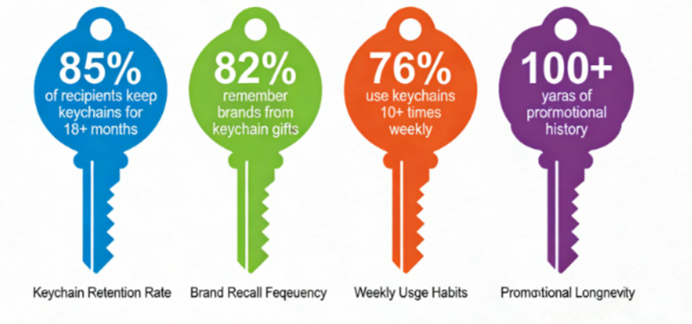 • Retention & Loyalty: 79% of recipients say they’re more likely to do business with a brand that gave them a useful promotional gift. A keychain isn’t just a giveaway – it’s a relationship-builder that encourages repeat purchases, referrals, and brand advocacy.