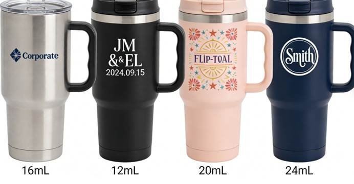 Our customization options are designed to make your gift unique and tailored to your needs. We offer 4 mug sizes (12oz, 16oz, 20oz, and 24oz) to suit different preferences, and 10+ color options (matte black, white, silver, navy, blush, and more) to match your brand palette or personal style. For logo printing, we use high-quality sublimation and screen printing techniques that ensure crisp, vibrant designs that won’t fade, scratch, or peel—even after 100+ washes. You can print any logo, text, or graphic: corporate emblems, personal monograms, event dates, thank-you messages, or custom artwork—we work with you to bring your vision to life.