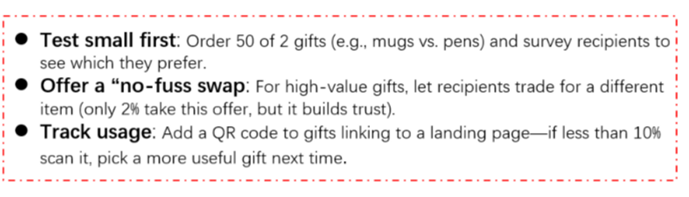 Most brands pick gifts based on “what’s cheap”—but the best campaigns pick gifts based on “what matters to them.” A 2025 survey of 20,000 consumers found that gifts used 5+ times per week have 7x more brand impact than one-time giveaways. Here’s how to get it right: