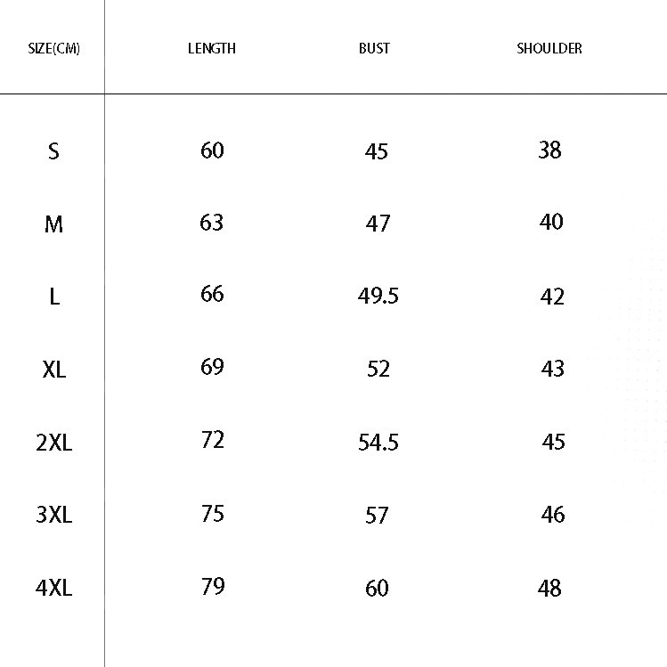 S, M, L, XL, 2XL, 3XL, 4XL