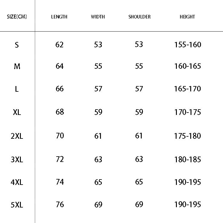 S, M, L, XL, 2XL, 3XL, 4XL, 5XL