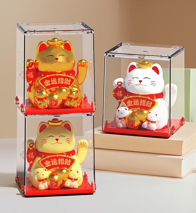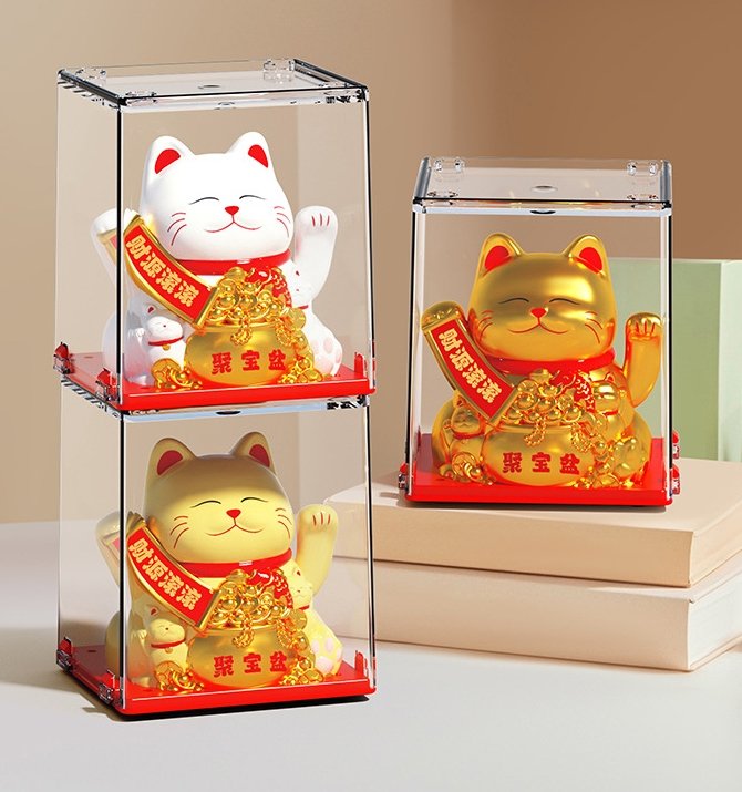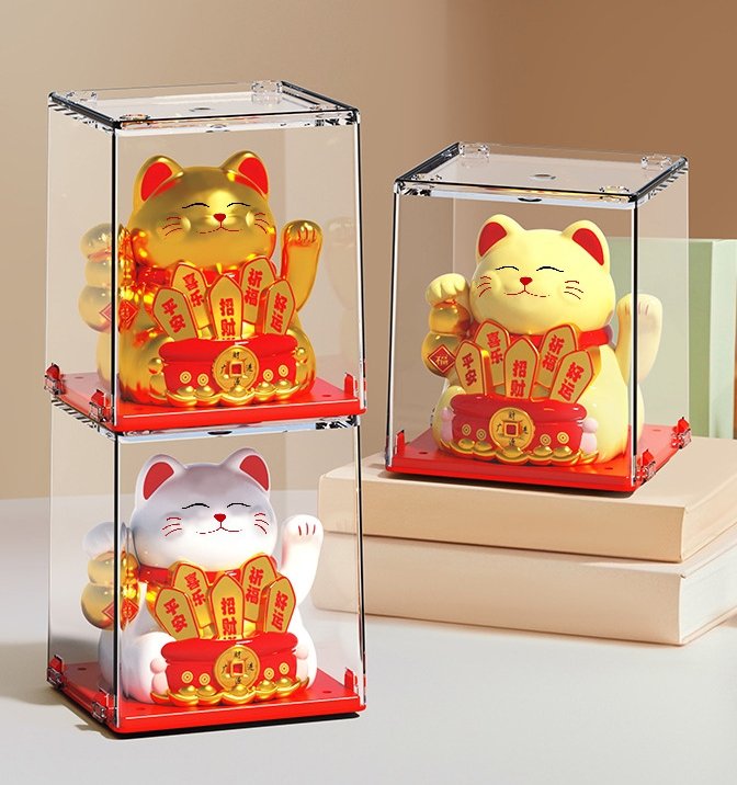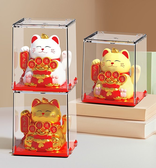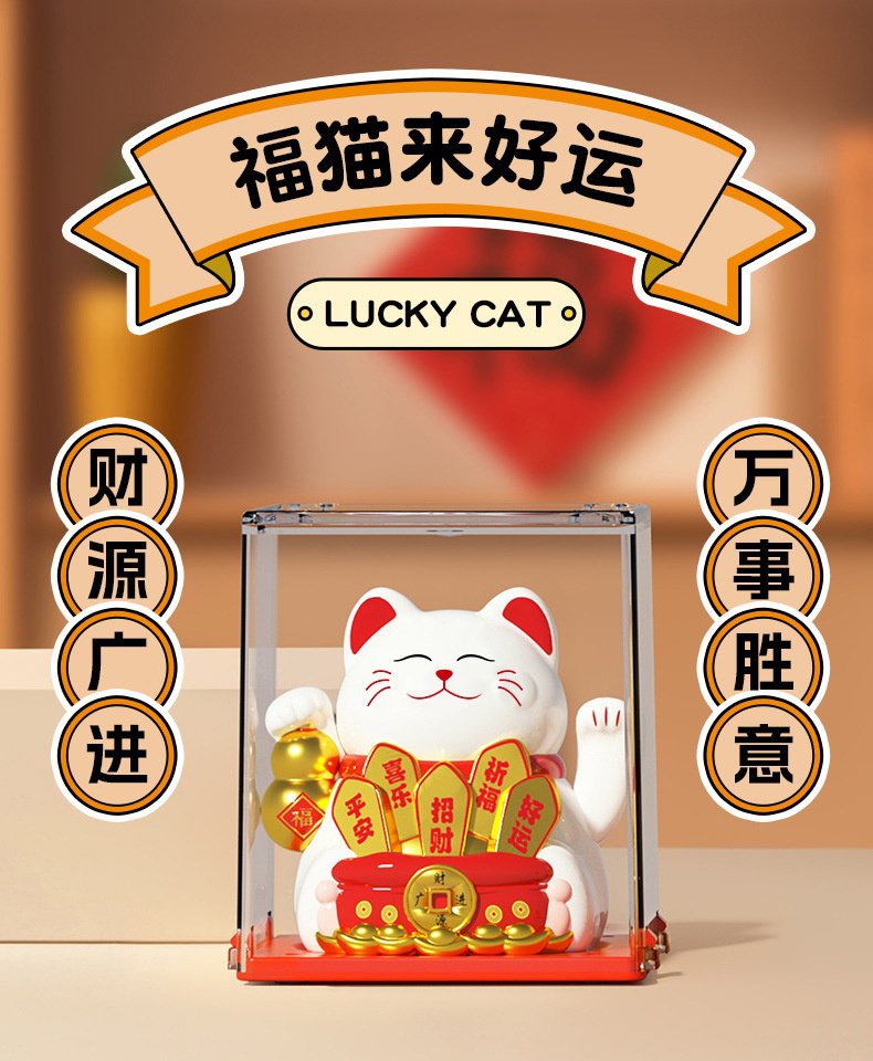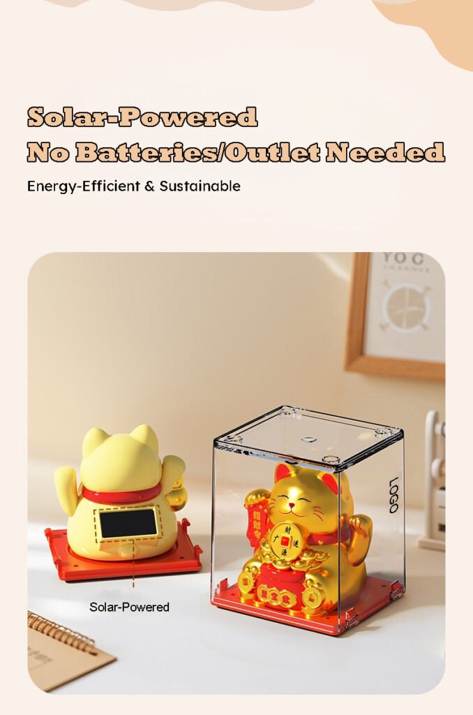 Custom LOGO 2-Inch Cute Automatic Waving Maneki Neko Lucky Cat Car Ornament Mini Gift for Store Opening