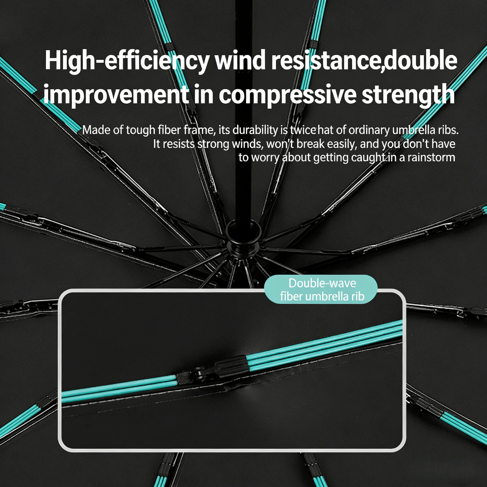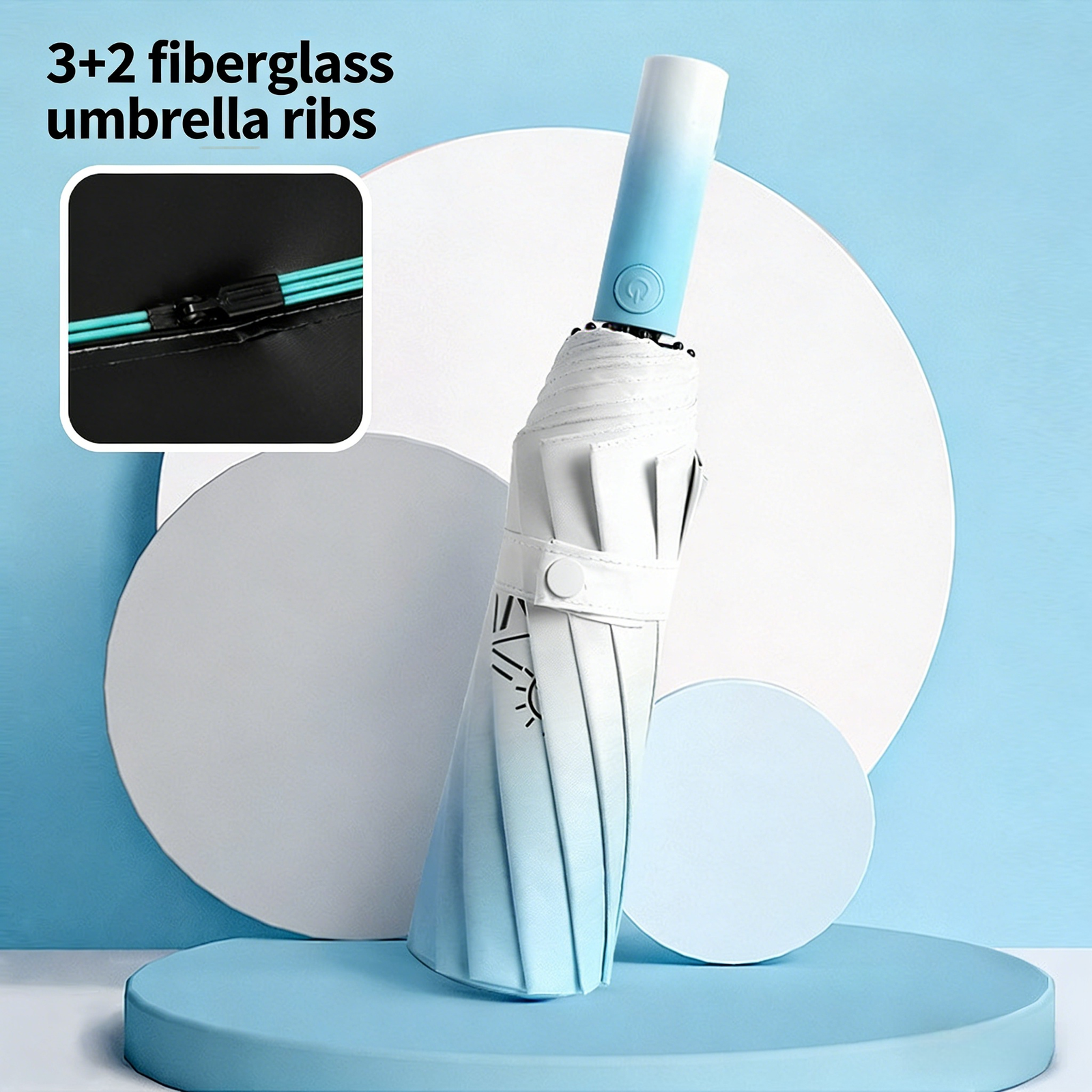 Promotional Custom Portable Compact Lightweight 60 Rib Gradient Windproof Black Coated Fabric Sun and Rain Umbrella