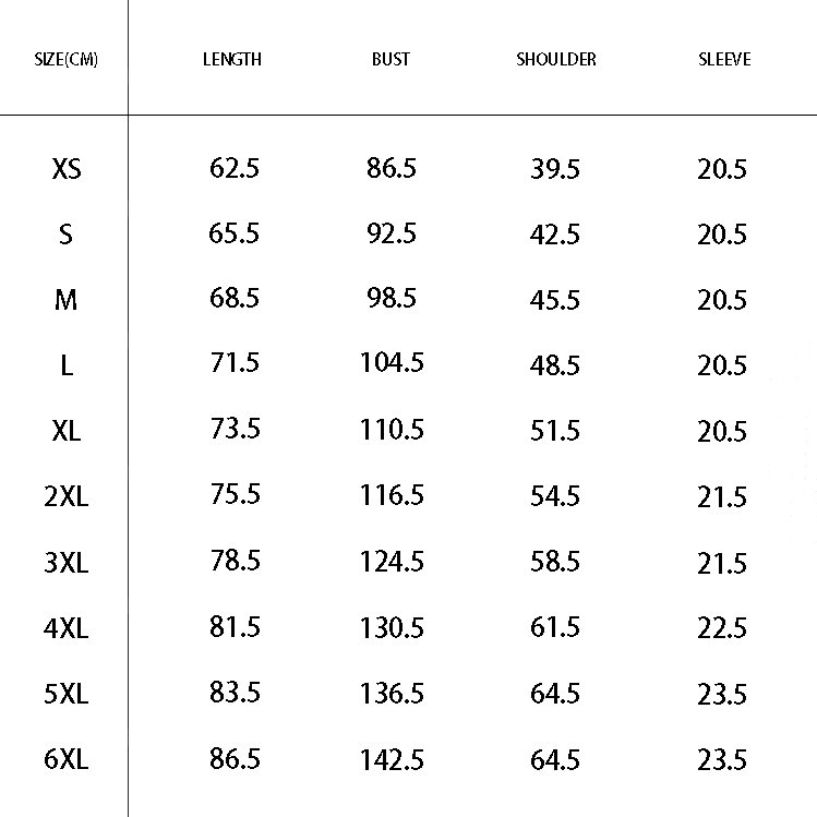 S, M, L, XL, 2XL, 3XL, 4XL,5XL,6XL